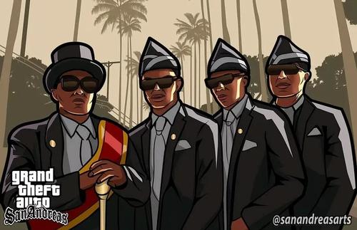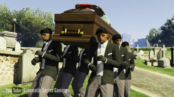 油管UP主Cinematic Series Gaming尝试在《GTA5》游戏中再现了一下最近非常流行的抬棺舞,
